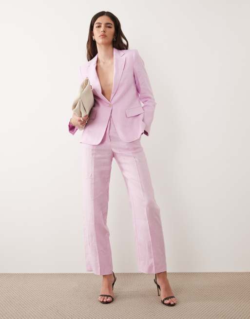 Mango Boreli 100% linen tailored straight trouser co-ord in pastel pink