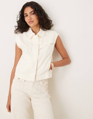 Mango boxy fit western sleeveless conceiled button up waistcoat in beige