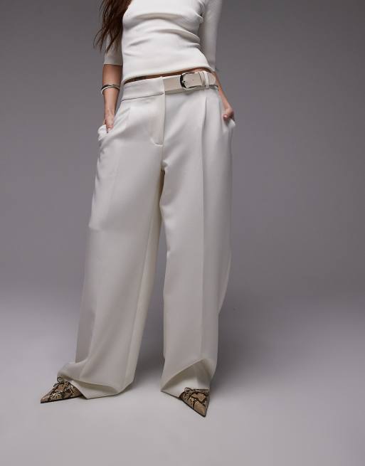 Mango buckle waistband straight leg trousers in white