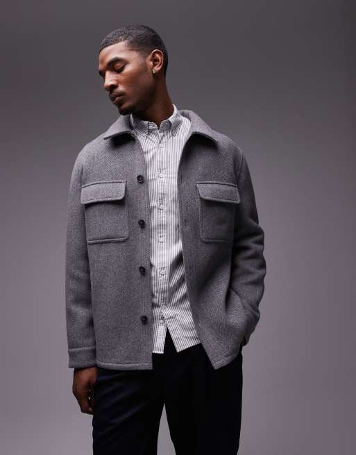 Mango button down herringbone shacket in grey