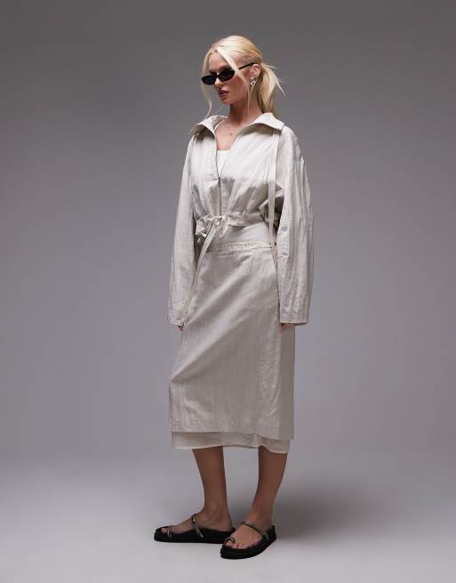 Mango capsule tailored midi skirt and crushed rami jacket co-ord in ivory