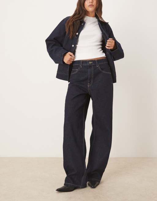 - Non-stretch denim: dark-blue wash