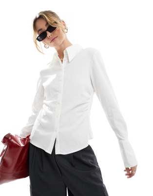 Mango cinched waist long sleeve shirt in off white
