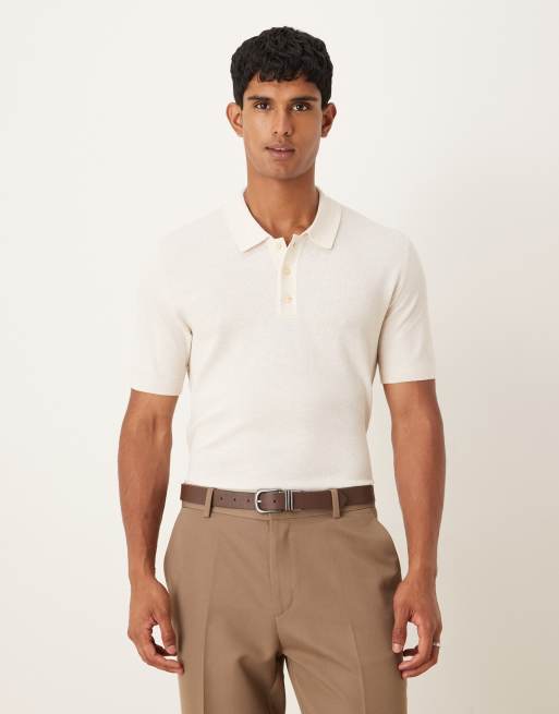 Mango cotton blend fine knitted short sleeve polo shirt in cream