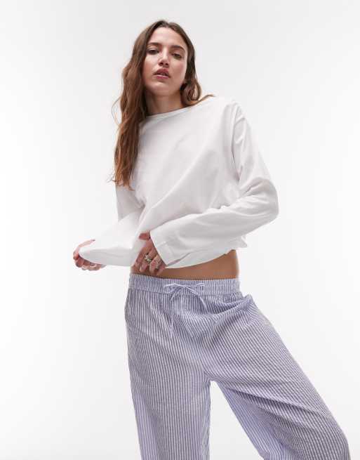 Mango cotton long sleeve top and seersucker trouser pyjama set in white & blue stripe