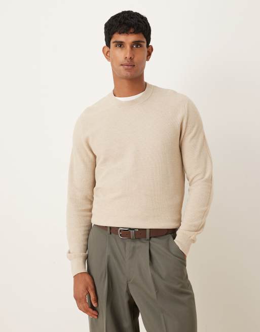 Mango cotton mix fine knit jumper in sand