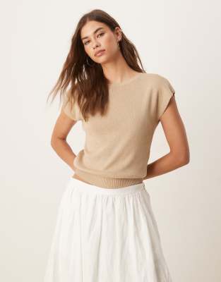 Mango cotton mix knitted cap sleeve top in beige