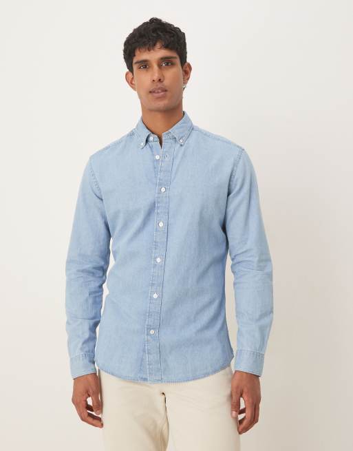 Mango cotton mix shirt in light blue