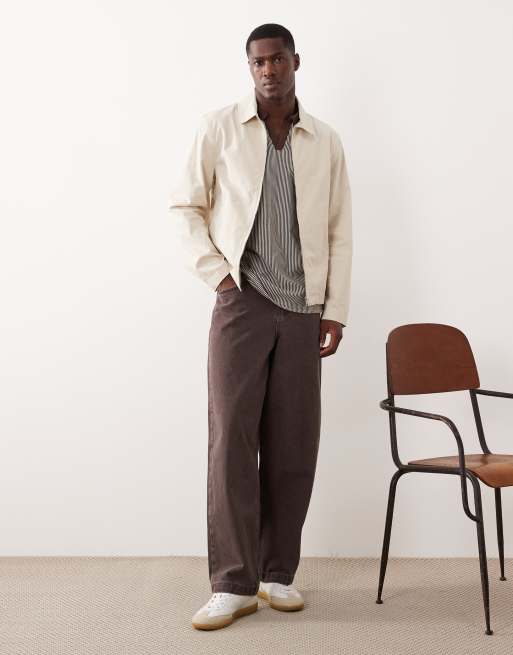Mango cotton mix zip through harringto jacket in beige