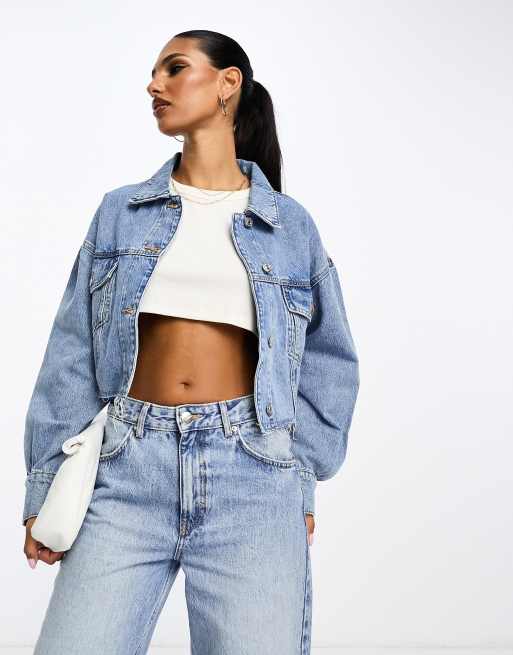 Mango cropped denim jacket in blue