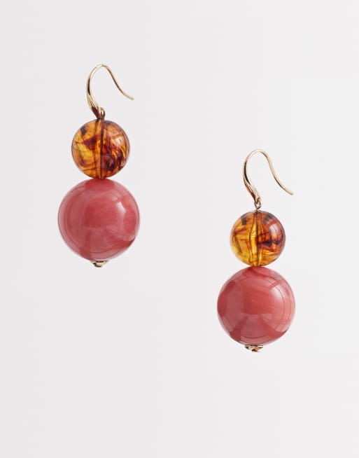 Mango drop earings in pink and brown
