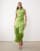 Mango Dylan high cowl neck satin sleeveless blouse co-ord with tassle detai & trouser l in lime