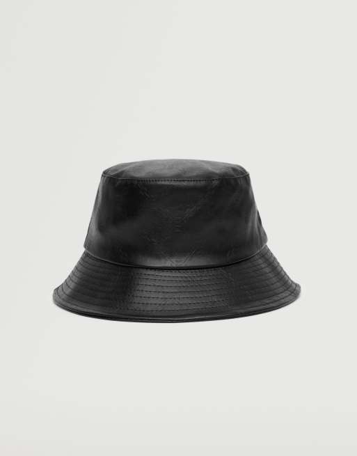 Mango faux leather bucket hat with chain embossing in black