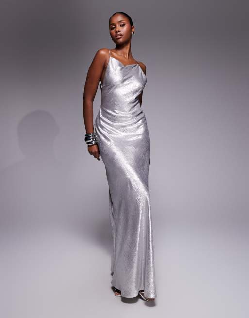 Mango featuring Kaia Gerber backless cami maxi dress in silver