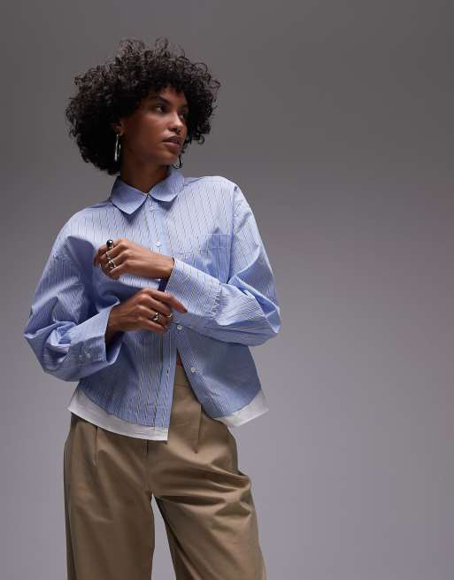Mango frayed hem cropped shirt in blue