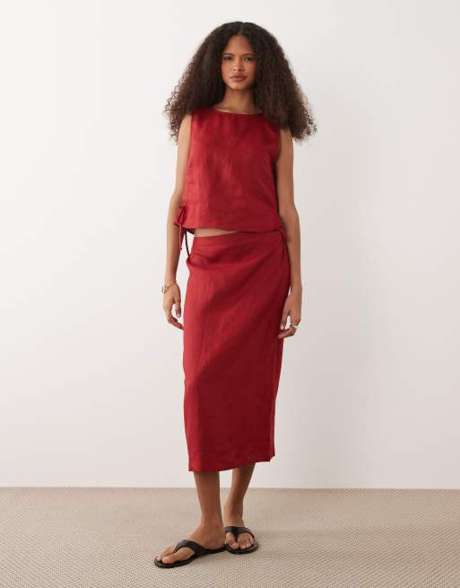 Mango Fred 100% linen sleeveless top & skirt co-ord in red