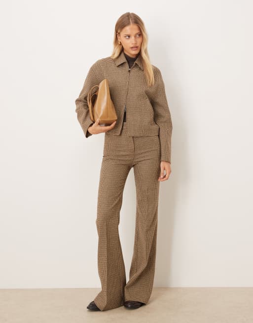 Mango Gina wool mix zip through jacket & trouser co-ord in brown check