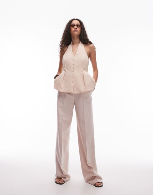Mango halter neck suit co-ord in pale pink