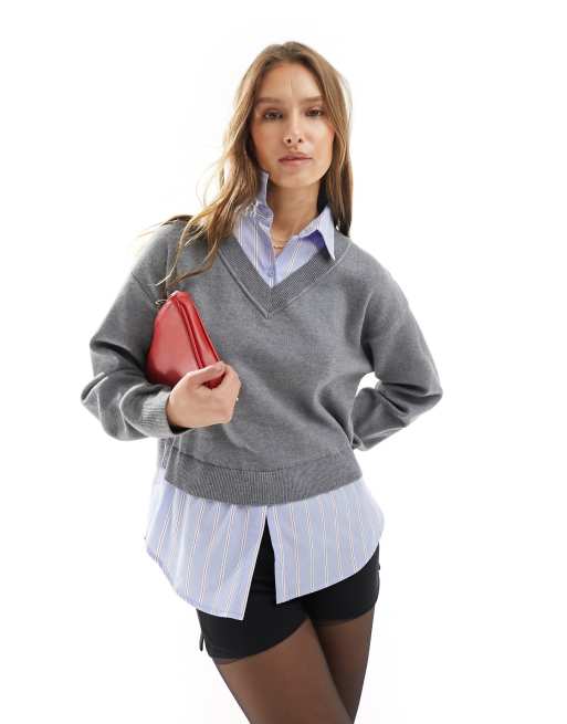Mango jumper with built in shirt in grey