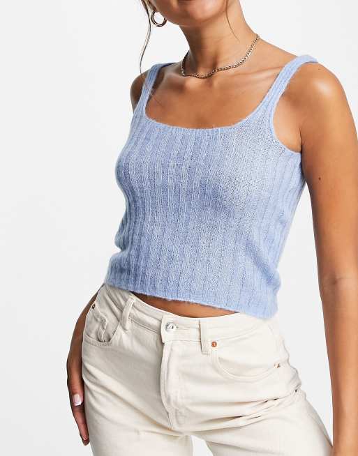 Mango knitted crop top in blue