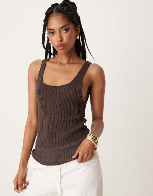 Mango knitted round neck vest in chocolate