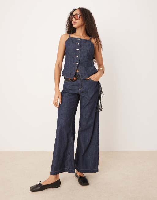 Mango Lia soft denim straight leg jean co-ord in dark blue