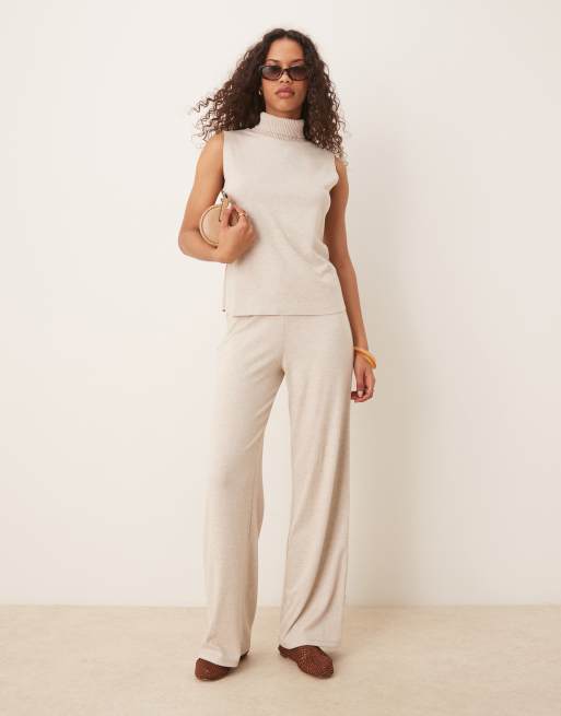 Mango light weight knitted high neck top and trouser co-ord in light beige