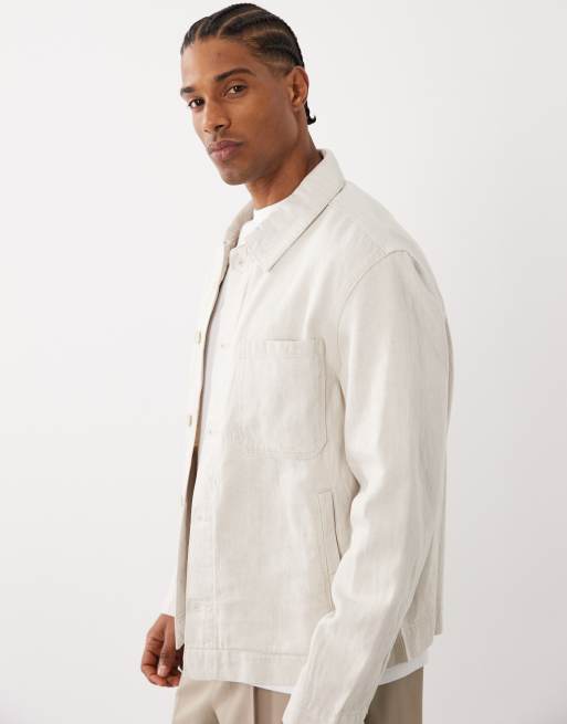 Mango linen blend denim look button up jacket in ecru