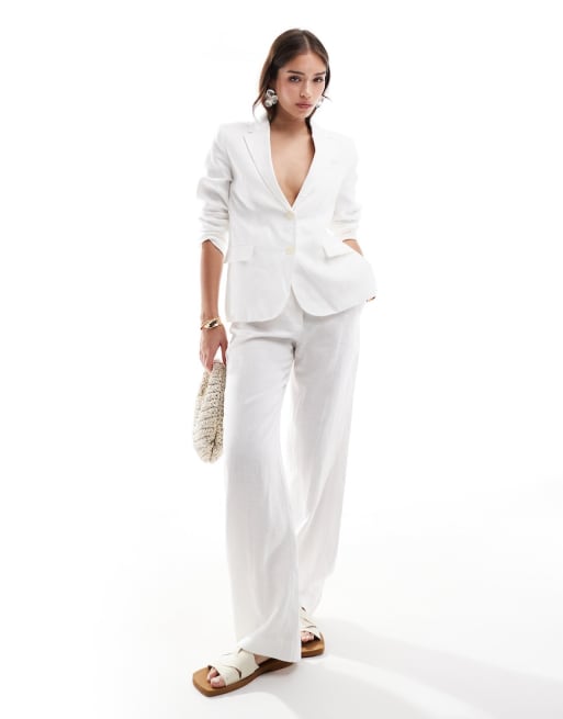 Mango linen cinched waist blazer and tailored trousers co-ord set in white