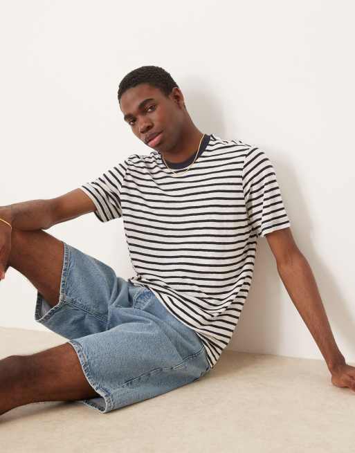 Mango linen mix t-shirt in navy and white stripe