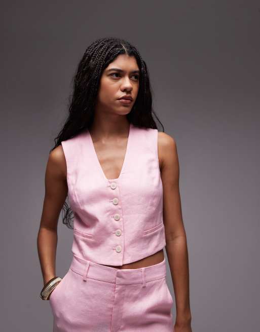 Mango linen waistcoat co-ord in pink