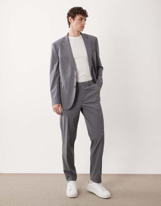 Mango London regular fit fine check print tailored suit trouser co-ord in grey