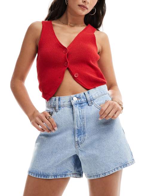 Mango longline relaxed denim shorts in light blue