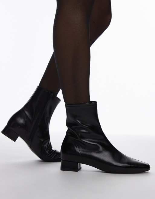Mango low heel square toe ankle boot in black
