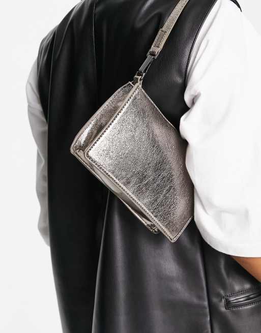 Mango muse thin shoulder bag in metallic silver