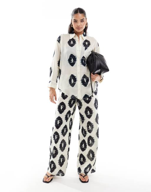 Mango oversized aztec print shirt and straight leg trousers co-ord set in beige