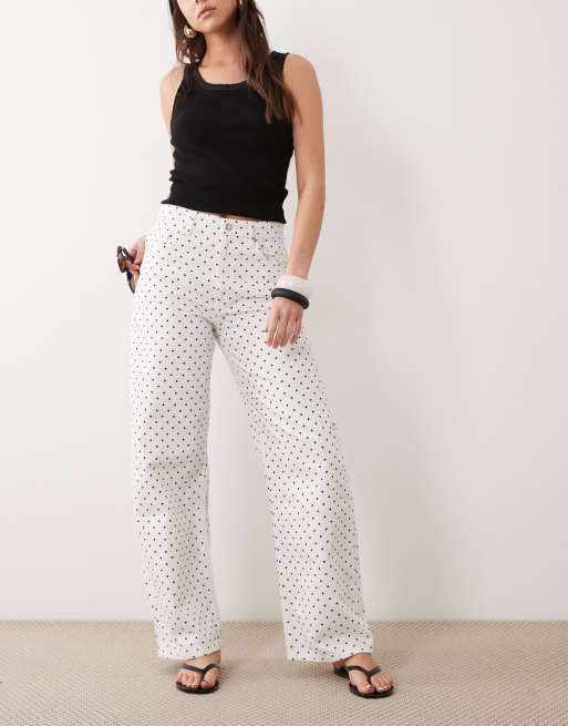 Mango Polka 100% cotton straight jean in white and black polka dot
