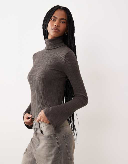 Mango roll neck knitted top with flare sleeves in grey
