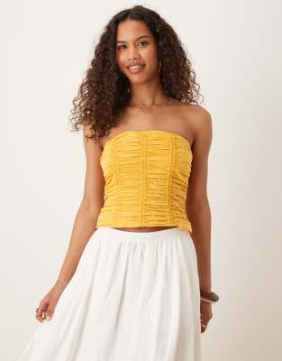 Mango ruched bandeau top in sunset yellow
