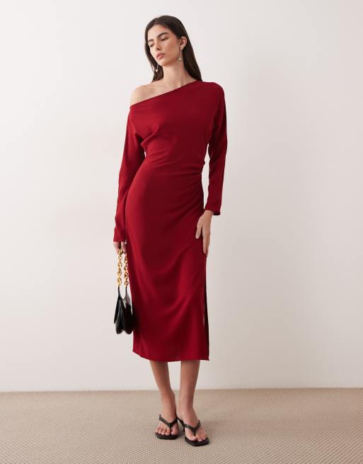 Mango ruched waist long sleeve maxi dress in red