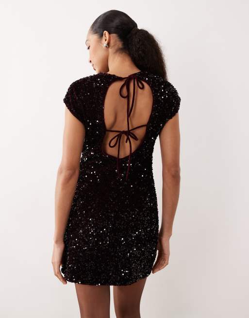 Mango sequin cap sleeve mini dress in burgundy