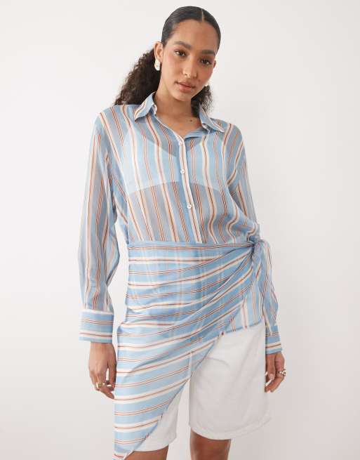 Mango sheer shirt in blue and brown stripe