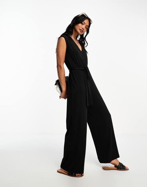 Mango sleeve less v-neck jumpsuit in black