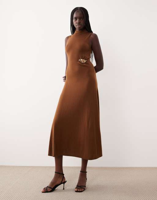 Mango sleeveless maxi dress with hardware detail in mid brown