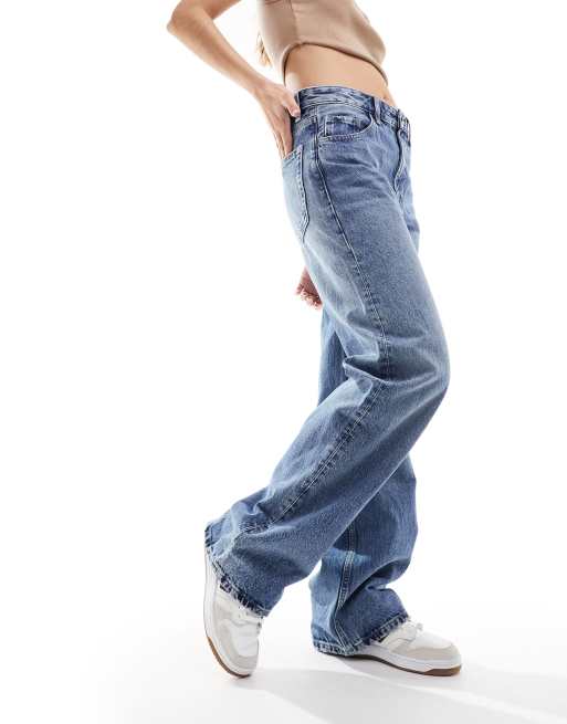 Mango straight leg oversized jeans in light blue