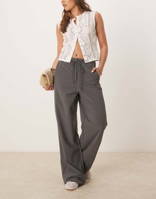 Mango straight leg pinstripe trouser with draw string waist in grey