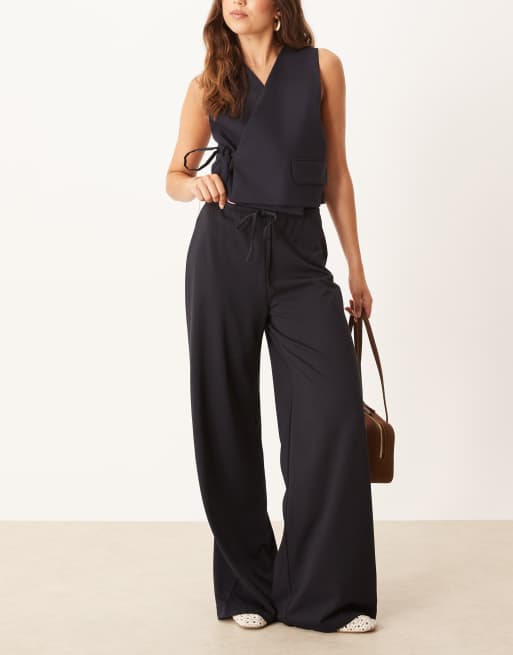Mango straight leg tie front trouser in navy