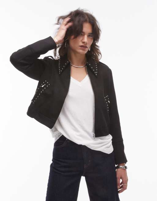Mango studded collar western jacket in black