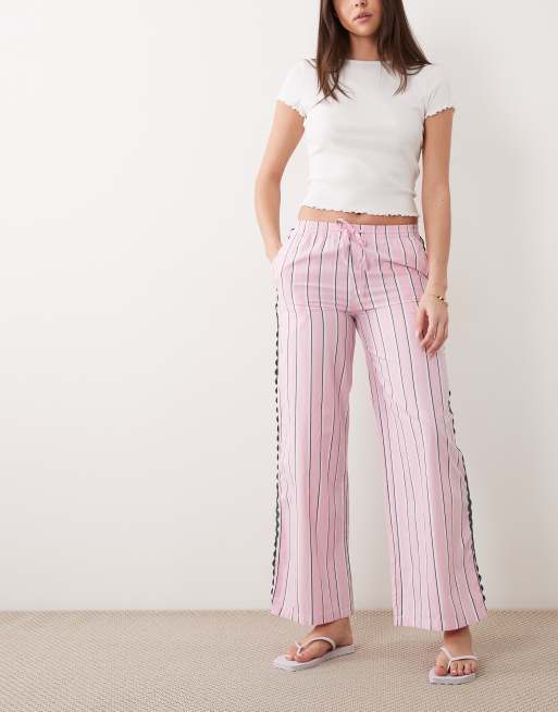 Mango Teen 100% cotton straight trouser in pink and green stripe