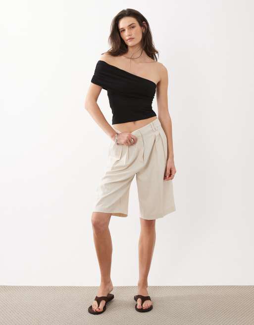 Mango Teen cotton rich one shoulder top in black